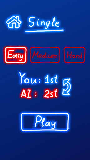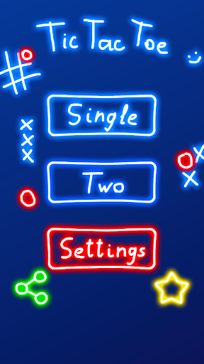 – Tic Tac Toe Glow name has 3 difficulty levels: easy, medium and very hard.