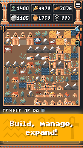 Tiny Pharaoh is a real-time strategy game set in Ancient Egypt. Become the master builder and turn the meadow into a city with a functional economy. Build houses, farms, mines, sawmills, and much more. Accumulate resources and achieve significant goals, such as building pyramids, the Great Sphinx, and many other famous buildings!