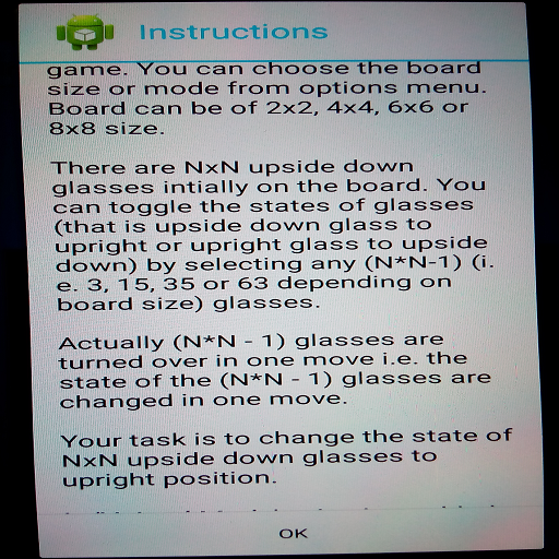 *** Actually (N*N – 1) glasses are turned over in one move i.e. the state of the (N*N – 1) glasses are changed in one move.
