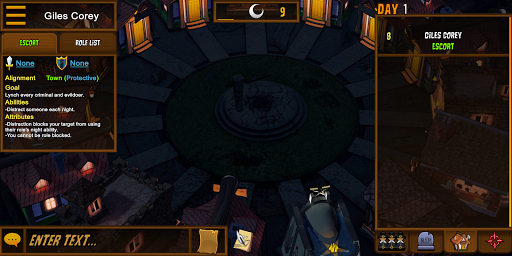 The day phase allows the Town members to discuss who they suspect of being an evil role. Once the voting phase starts a majority vote from the town will put someone on trial.