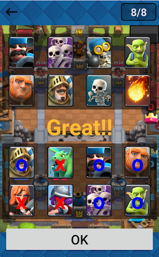 In this mode, eight cards are displayed in a few seconds, so you can memorize everything and answer the displayed cards.