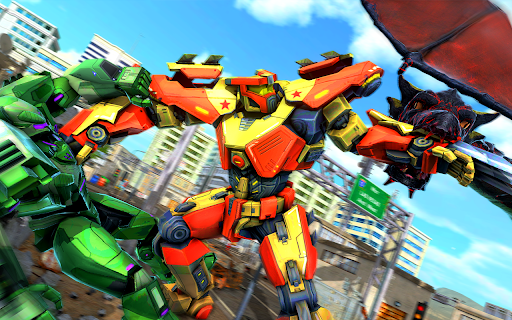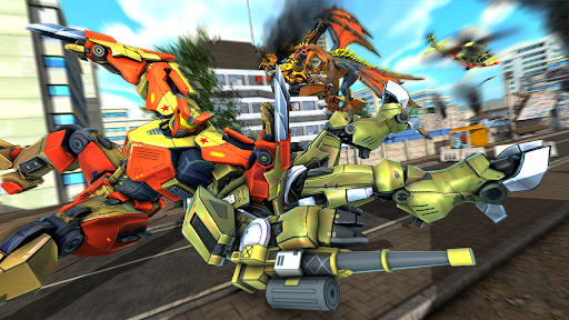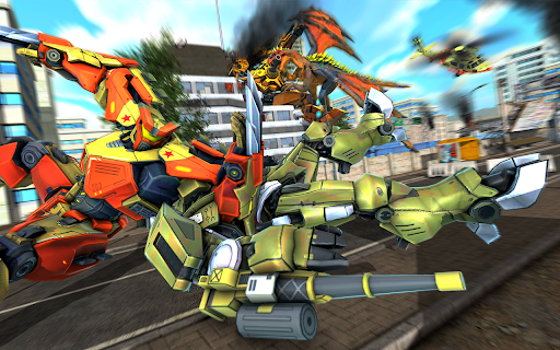 Warrior robots kill the dragon and get points to unlock other unique robots for shooting wars. Fighting ninja robots transform different characters such as lion, dragon, helicopter, drone, swords, car and flying robot. futuristic robot game showing you the game environment as a