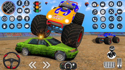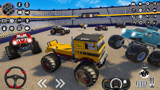 Offroad monster truck simulator games let you move around with the button keys or a joystick, just like the real Truck Demolisher Truck Derby 2. Sticks and keys let you do tricks and stunts in the monster truck demolition racing games. In real monster truck crash derby games, the goal is usually to be the first to cross the finish line or win the race. To get the most points in Truck Demolisher Truck Derby 2, you have to do jumps and tricks, just like in real monster demolition derby games.