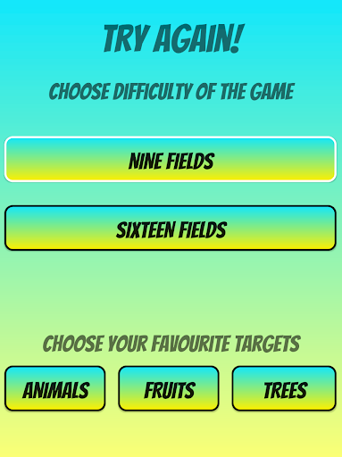 An amazing and entertaining app for all people over the world! Try Again! will proof your reaction time skills in an enjoyable way. Choose your favorite symbols, which will act as random moving “targets” in a play field. Gain experience points for every completed level to unlock new difficulty of levels! Measure your progress with other users using the app from every country!