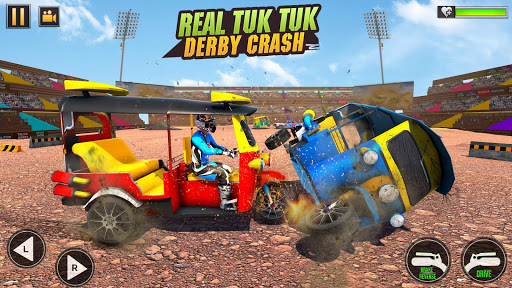 Tuk Tuk Auto Derby Crash Stunts Demolition real car simulator performs extreme speed. Extreme stunts Auto games maneuvers to battle with strong sturdy opponents inside Real Tuk Tuk Rickshaw Demolition car derby crash stunts Xtreme racing arena. Stunts by Rival Auto TUK TUK looks so real that you can only win if you catch them off guard and fly them off the Derby Demolition Arena. Auto TUK TUK driving simulator by properly using Auto Rickshaw derby Body to damage derby car vs Auto TUK TUK opponents in best of Real Tuk Tuk Rickshaw Demolition Derby Stunt in Travel and Local to simulate Derby Arena world in this Modern Tuk Tuk Rickshaw Demolition Derby Stunts.