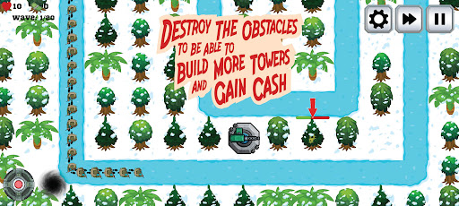 -obstacles that block you to build towers. You can destroy the obstacles to place towers. They also gain you cash for turrets.