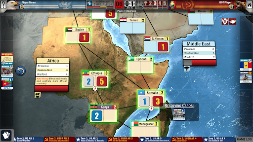 Card mechanics based on the historical events of the Cold War, centered around East Africa, the Arabian Gulf, and the vital sea lanes stretching between them. New Flashpoint countries create additional tension around Coup attempts and have DEFCON impacts.
