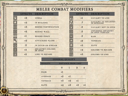● 5 types of infantry formation – Line, Column, Open Order, Square, Unformed.