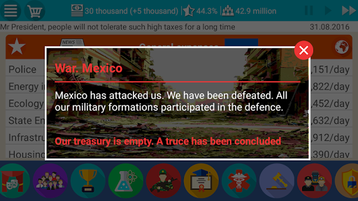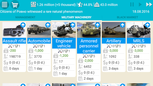 – Conduct army drills (there more than 10 kinds of military weaponry available to you).