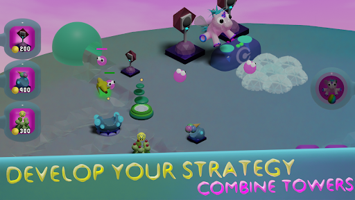 Each tower has unique abilities, allowing you to create different combinations and discover your favorite strategies. Want something extra? Watch an ad to unlock the unicorn rainbow egg for the next party! By watching ads, you not only contribute to filling the reward pot but also make a meaningful donation towards a noble cause (stay tuned for more details within the app).