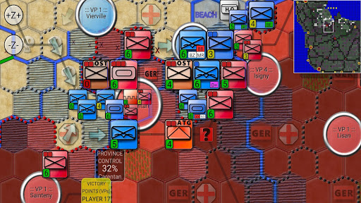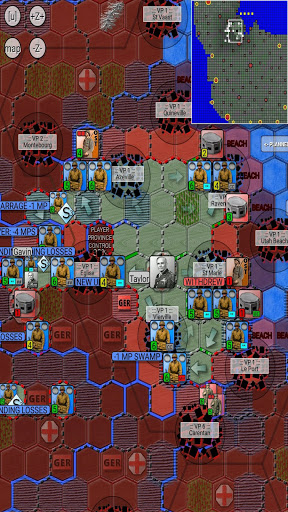 You are in command of the American force carrying out the western part of the 1944 Normandy D-Day landings: Utah and Omaha beaches and the airborne landings of the 101st and 82nd paratrooper divisions. The scenario starts with the 101st Airborne Division dropping during the night in the first wave and the 82nd Airborne Division on the second wave west of Utah Beach to control the key causeway and seize the crossing towards Carentan, and in the big picture, to speed up the drive to Cherbourg to secure a major port as quickly as possible. On the morning of June 6th, American troops start landing on the two selected beaches while US Army Rangers targeting Grandcamp via Pointe du Hoc split up in the chaos, and only some of the units land on Pointe du Hoc while the rest land on the edge of Omaha Beach. After seizing the heavily fortified port city of Cherbourg, the Allied plan is to break out from the Normandy bridgehead using the western coastal road network and ultimately break free via Coutanges-Avranches and free France.
