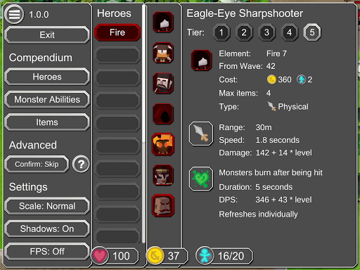 – Note the difference between “physical” and “spell” damage and heroes – it’s crucial that you have a lot of both to survive.
