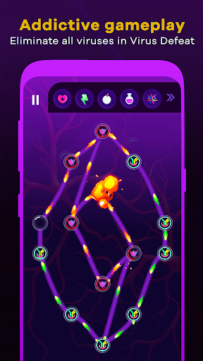 Introducing Virus Defeat – an addictive & challenging strategy puzzle game, that will test your intellect. The game is all about fighting against the viruses as Antibody in challenging levels, you’ll need to use all of your strategy skills to break through and eliminate all the viruses on each level. To help you out, you’ll have 5 power-ups: