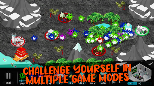 Virus Wipeout Gameplay is pretty exciting and complex. You need to have a strategy to defeat all the viruses in time before they infect all the places on the map. You can try various maps and our two game modes to see which one you like most.
