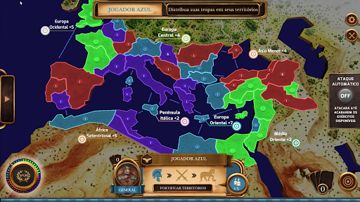 Jogo Clássico: Sinta-se no papel de um verdadeiro general. Mire no seu objetivo e defina cuidadosamente sua estratégia. Ataque na hora certa, proteja suas fronteiras e defenda seus territórios. Domine continentes inteiros, invada e conquiste territórios adversários. Mas avalie bem seus movimentos pois, assim como nas grandes guerras, ataques mal planejados podem fazer grandes potências caírem enquanto a estratégia correta pode transformar pequenos exércitos em grandes impérios!