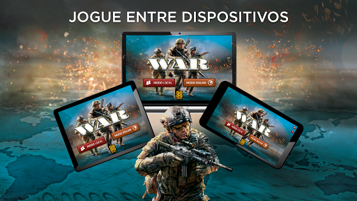 » MODO ONLINE: Divirta-se jogando WAR Online de 3 a 6 pessoas. Agora, você pode jogar a qualquer hora e com pessoas de qualquer lugar. O sistema de inteligência “SmartMatching” encontra o adversário ideal para você, tornando suas partidas muito mais dinâmicas e desafiadoras. Atenção: para este modo de jogo é necessário estar conectado a uma rede Wi-Fi.