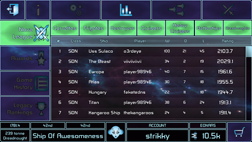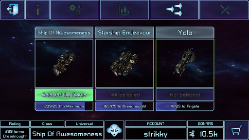 – Ship Development As you progress you’ll move through ship categories: Corvette, Frigate, Destroyer, Cruiser, Battleship and finally the ultimate Dreadnought class.