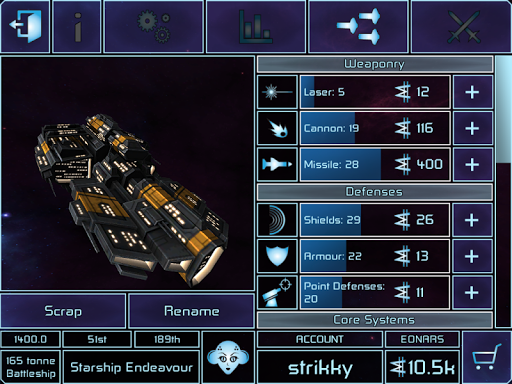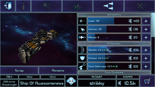 – Upgrade your ship’s performance with the winnings of your battle to enhance its fighting capabilities, in a simple RPG theme.