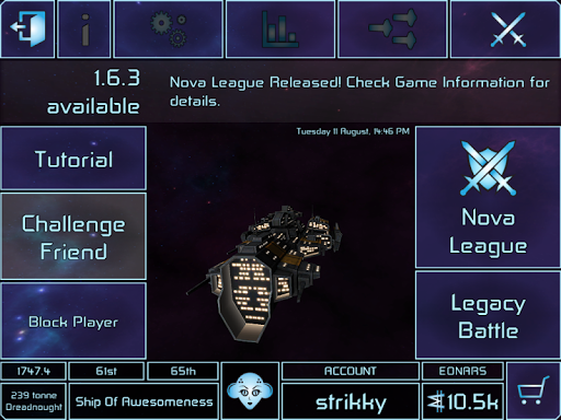 Multiplayer Starship duels! Battle with other players around the world for space supremacy in this new, free multiplayer turn based strategy within eight battle arenas. With a simple and easy to pick up battle mechanic at the game’s core, you’ll understand the basics quickly, but soon discover there’s far more strategy involved as you upgrade your space ship.