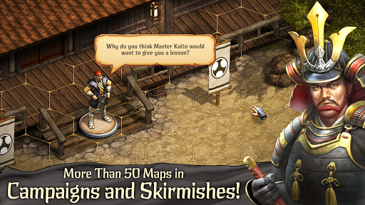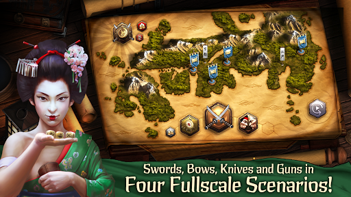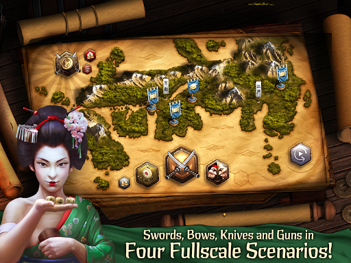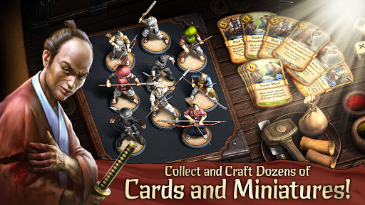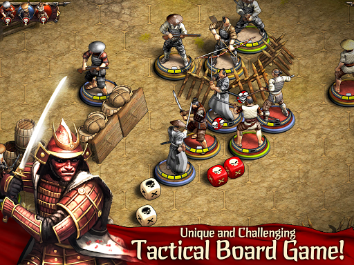 Warbands:Bushido is a miniatures board game online arena with cards, miniatures, dice (i.e. dice random involved) and beautiful terrains to fight on, with both multiplayer battles boardgamers are used to, and challenging single-player scenarios.