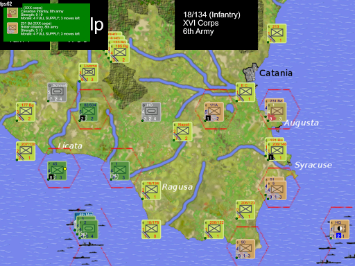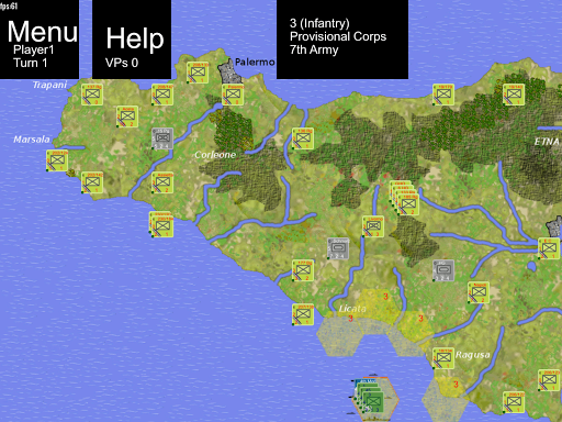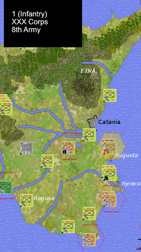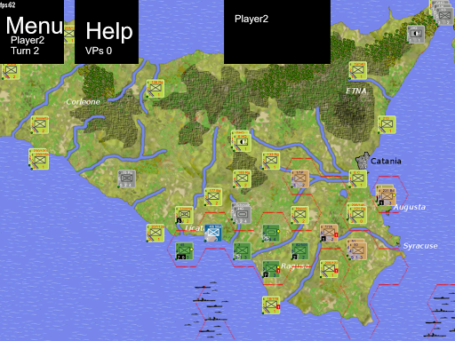 This game allows you to play either the Allied invasion, or the Axis defenders. The aim of the Allies is to capture the 3 principle cities of Sicily (Catania, Palermo and Messina) as quickly as possible. The Axis must prevent this.