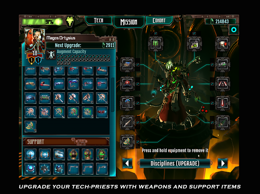 Flesh is weak! Upgrade your Tech-Priests with weapons, support items, Servo-Skulls and other mechanical augments as you assemble your cohort. Customize your team’s disciplines, choosing from multiple character classes to create a squad for every playstyle.