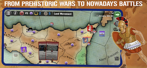 • Combat units may be from the land, naval or air domains. You will find different types, such as infantry, cavalry, artillery, guerrillas, submarines, flat tops, fighters, elephants, anti-aircraft batteries, etc … All of which can be combined into different stacks for easy handling.