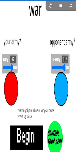 Next, you get the option to either begin game, or control your army. If you click “Begin”, everything will be automated, and you will be unable to do anything. However, if you click “Control your army”, you can move your army by touching where you want them to go.