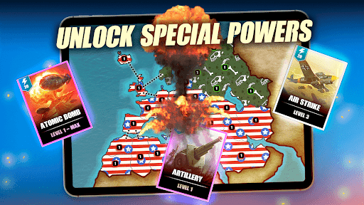 It combines classic Risk board gameplay and multiplayer games with an innovative deck of bonus cards for airstrikes, nukes, missiles, assassins and more. With different maps, game modes and options, and the possibility to play multiplayer games. Battleships are gone.