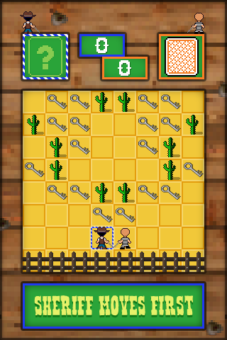 Swipe in a direction to play a card that will move both the sheriff and outlaw in that direction or even swap their positions.