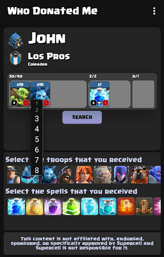 This app is for you, we’ll help you find out who keeps donating the wrong troop, you just have to select the troops that you received, select the level of each troop and click search.