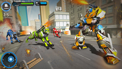 The city is under robot attack by the evil robots in the busy town, there’s only hope of tiger robots to save the people in real tiger robot games. Get into a real simulation battleground, fight robot warriors who want to destroy peace in Wild Tiger Multi Transform Robot Shooting Game. By using your special powers of robots transformation, transform into bike robot, tiger robot to save the world from evil tiger robots. So download now to test your robot shooting skills in tiger robot shooting games. In this tiger game war against the tough opponent in this robot battle and utilize your full power to tackle and attack the enemy robots to your fullest potential of robotics power in tiger robot games. It will show you the guns and different robot control skills with guns and fire powers. The rival robots are actively targeting innocent people, go out eliminate them and shoot all the enemy robots with your incredible robot shooting skills.