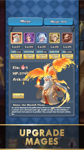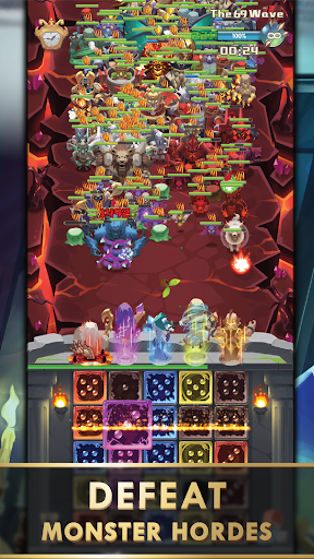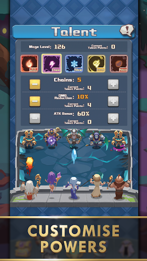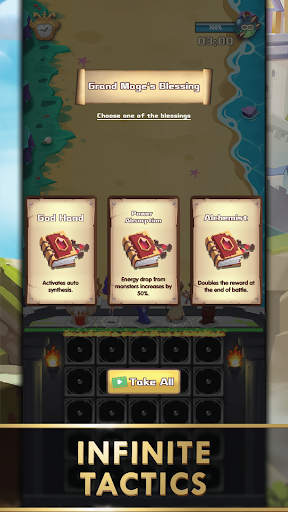 Merge random magic dice to stack up your wizards’ power. Gain magic power from defeating monsters and watch as your wizards unleash the power of the elements: Fire, Lightning, Ice, Wind and Earth against the relentless foes.