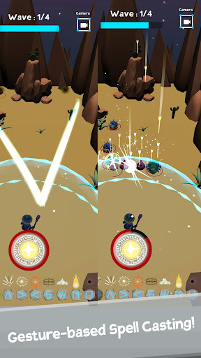 A game that has similar mechanics to tower defense but doesn’t have units or towers but rather projectiles and spells that can be casted using gestures and shape recognition.