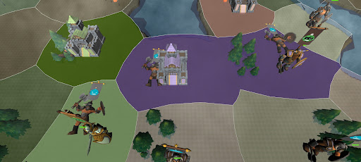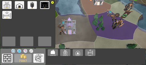 Build structures like castles, hospitals, forges, mines, and barracks.