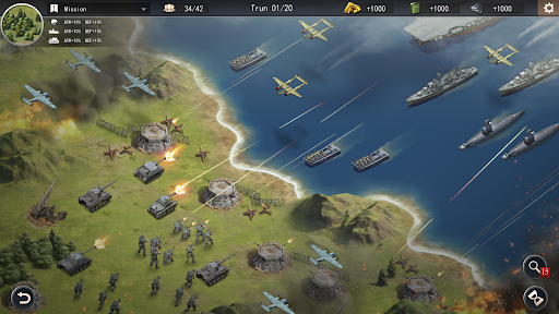 More than 100 famous generals of world war 2 figures such as Guderian, Manstein, Rommel, Button, Zhukov, MacArthur, Montgomery, Eisenhower, will be on the stage in turn. Take advantage of the generals, assess the risk,find out the enemy’s weaknesses and defeat them to win the final victory of world war 2