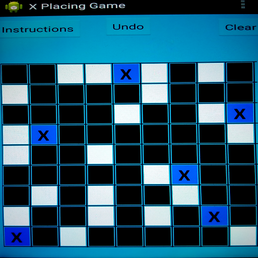 *** Your task is to place the N (N can be 5, 6, 7, 8 or 9 depending on board size) crosses (X) on the white squares in such a way so that each row and each column contains exactly one cross (X).