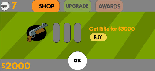 Este é um jogo de sobrevivência onde você tem que atirar em zumbis e coletar dinheiro para comprar armas e obter caveiras para melhorar sua defesa.