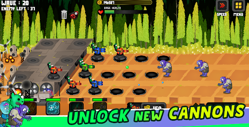 Your mission in Zombie Defense – Cannon War TD? is to completely eliminate and prevent zombies from attacking human bases. Keeping the civilization safe by building the last shelter as strong as possible, boosting heavy weapons, and assembling a legendary Zombie Defense Cannon team.