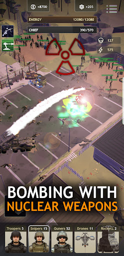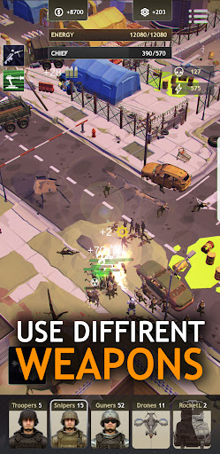 Use different weapons against zombies – hit them with bats, shoot them with machine guns, set them on fire with a flamethrower, bomb them with drone missiles or nuke them! Without tactics and strategy against the dead – the battle can’t be won. Sweep every state and take out the boss. Dive into a dangerous adventure, take destiny into your own hands – reclaim the land and build a new world for survivors of the post-apocalypse!
