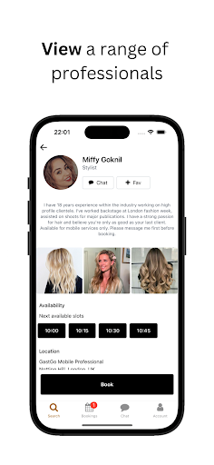 At the same time, GastGo helps clients find suitable professionals anywhere and book services they require at any time. Clients are able to find a professional in their local area, read the professional’s review and book a service. After the service, the client is requested to leave their own feedback about their experience on the professional’s profile. As a client, you are able to save your favorite professionals for future bookings whenever you want.