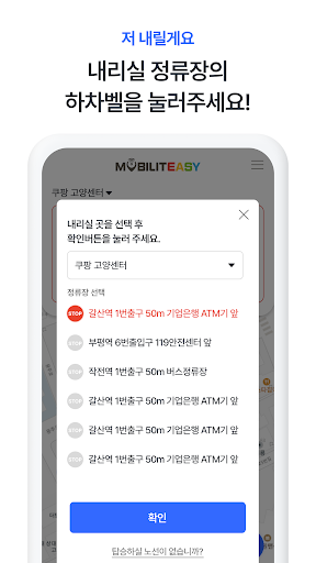 탑승하고자 하시는 차량의 실시간 위치를 지도와 정류장 리스트를 통해 확인할 수 있습니다.