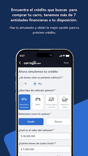 ¿Quieres financiar? En App CarroYa no solo encuentras el carro que quieres sino que además puedes simular tu crédito, conocer las diferentes ofertas en financiación que tienen nuestros bancos aliados para ti y recibir todo el acompañamiento que necesitas durante todo tu proceso de compra.