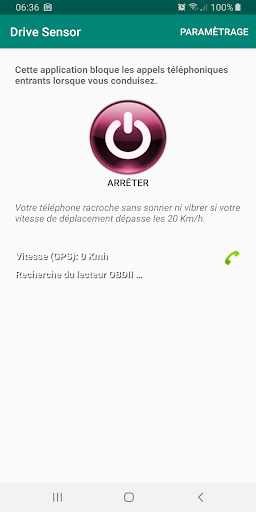 Turn off incoming phone calls while driving. The phone hangs up without ringing or vibrating when your movement speed exceeds 20 km/h. Else, all goes as usual. (GPS / bluetooth OBDII ELM 327)