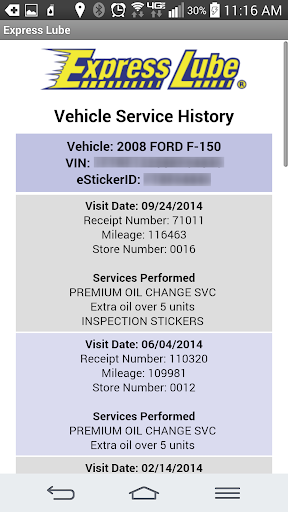 The eSticker app also lets you view a history of all services performed on your vehicles by Express Lube at any time, so you’ll always know which services have been performed on each of your vehicles, and when they were last performed.