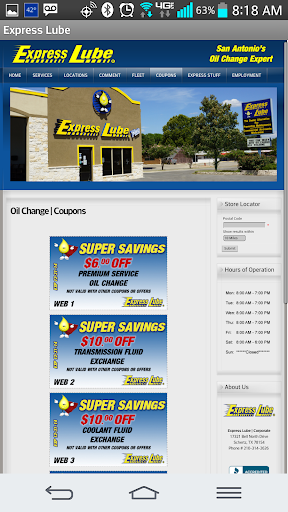 Other features include the ability to schedule a reminder on your calendar based on your vehicle’s eSticker date and call up a map to find your nearest Express Lube location.