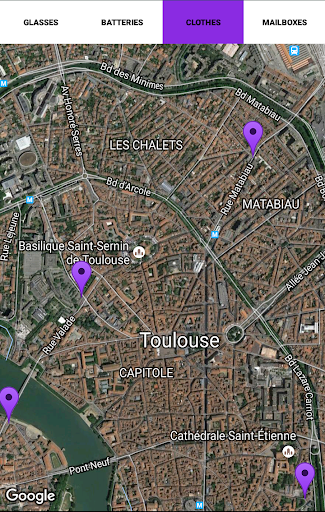 With the Toulouse VPVB application you will quickly find the nearest collection point for glasses, batteries or clothing.