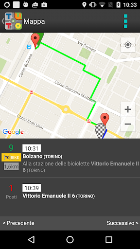 – Nei pressi di: nei dintorni della Vostra posizione o nei dintorni di un luogo che avete precisato, visualizzerete su una mappa interattiva le fermate e le stazioni della rete di trasporto pubblico, i parcheggi e le stazioni TObike. Potete inoltre consultare gli orari dei passaggi delle linee di trasporto pubblico, gli orari dei treni e la disponibilità di biciclette e di parcheggi liberi.