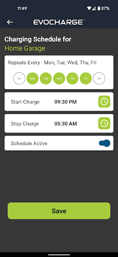 Follow the in-app instructions to easily connect your charging station(s) to WiFi. (The iEVSE Home models will only work with 2.4GHz WiFi. The Home 50 will work with both 2.4 and 5 GHz.) Use the ‘Schedule Charging’ feature to schedule charging sessions during off-peak times, when electricity rates may be lower. May be compatible with local utility programs.