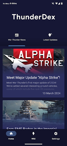 • Stay up to date with the ability to select both a War Thunder News, and War Thunder Updates section of the app that launches a webpage